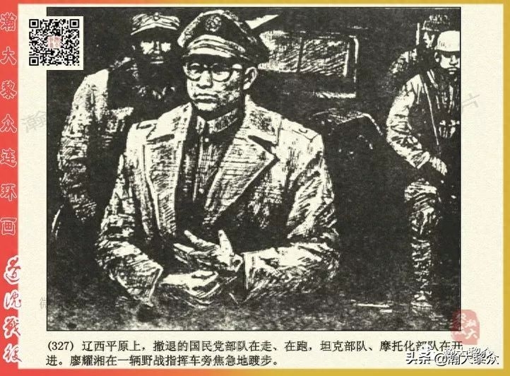 327 辽西平原上,撤退的国民党部队在走、在跑,坦克部队、摩托化部队在开进。廖耀湘在一辆野战指挥车旁焦急地踱步。
