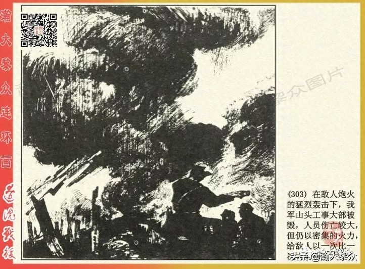 303 在敌人炮火的猛烈轰击下,我军山头工事大部被毁,人员伤亡较大但仍以密集的火力,给敌人以一次比一次大的杀伤。