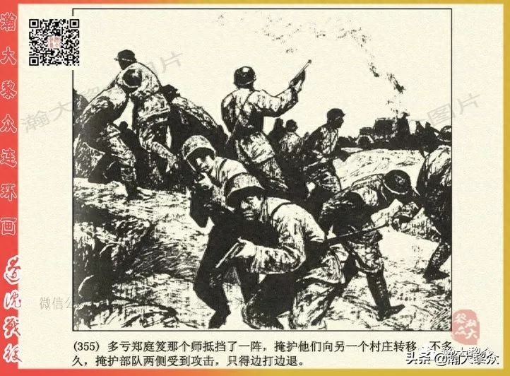 355 多亏郑庭笈那个师抵挡了一阵,掩护他们向另一个村庄转移。不多久,掩护部队两侧受到攻击,只得边打边退。