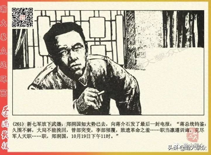 261 新七军放下武器,郑洞国知大势已去,向蒋介石发了最后一封电报:“蒋总统钧鉴:久围不解,大局不能挽回,曾部突变,李部倾覆,致遗革命之羞……职当凛遵训海,克尽军人天职…职,郑洞国,10月19日下午11时。”
