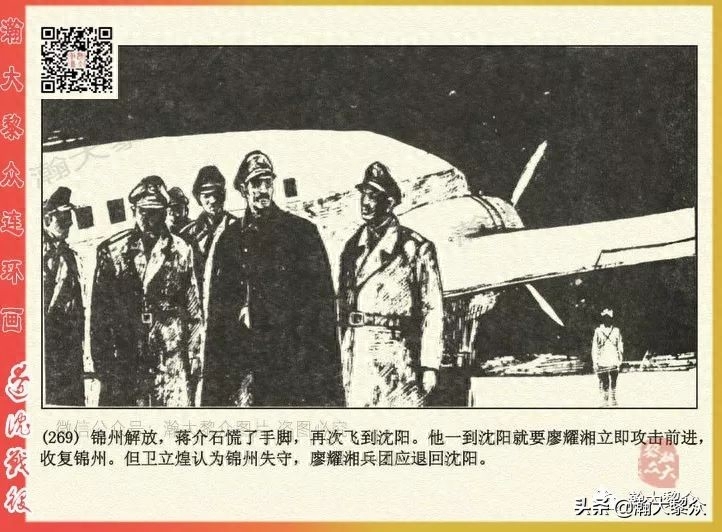 269 锦州解放,蒋介石慌了手脚,再次飞到沈阳。他一到沈阳就要廖耀湘立即攻击前进,收复锦州。但卫立煌认为锦州失守,廖耀湘兵团应退回沈阳。