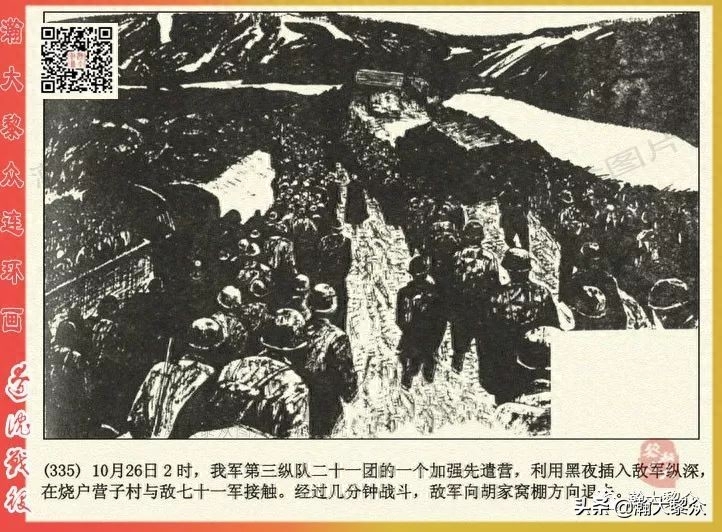 335 10月26日2时,我军第三纵队二十一团的一个加强先遣营,利用黑夜插入敌军纵深,在烧户营子村与敌七十一军接触。经过几分钟战斗,敌军向胡家窝棚方向退去。