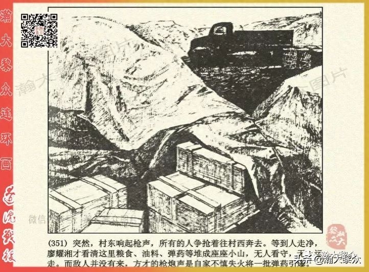 351 突然,村东响起枪声,所有的人争抢着往村西奔去。等到人走净,廖耀湘才看清这里粮食、油料、弹药等堆成座座小山,无人看守,无人运走。而敌人并没有来,方才的枪炮声是自家不慎失火将一批弹药引爆。