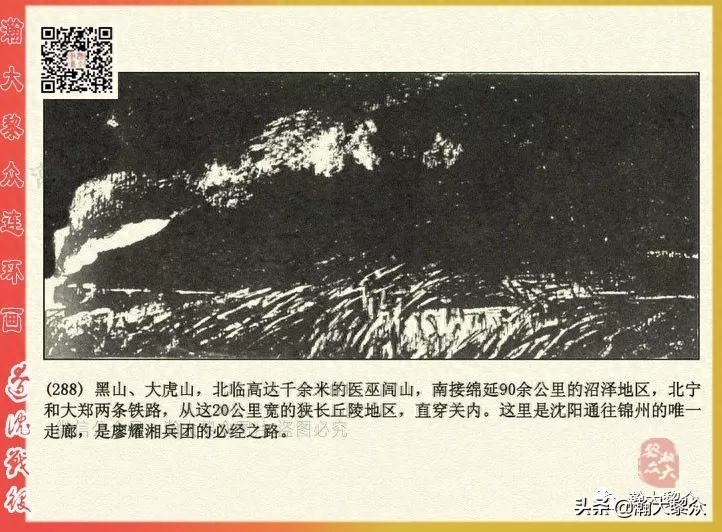 288 黑山、大虎山,北临高达千余米的医巫闾山,南接绵延90余公里的沼泽地区,北宁和大郑两条铁路,从这20公里宽的狭长丘陵地区,直穿关内。这里是沈阳通往锦州的唯一走廊,是廖耀湘兵团的必经之路。