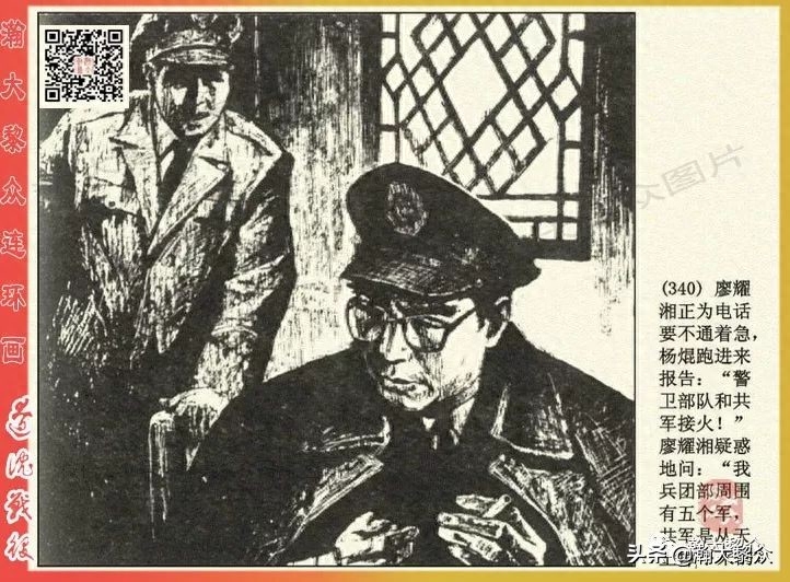 340 廖耀湘正为电话要不通着急,杨焜跑进来报告:“警卫部队和共军接火!”廖耀湘疑惑地问:“我兵团部周围有五个军,共军是从天上掉下来的?”