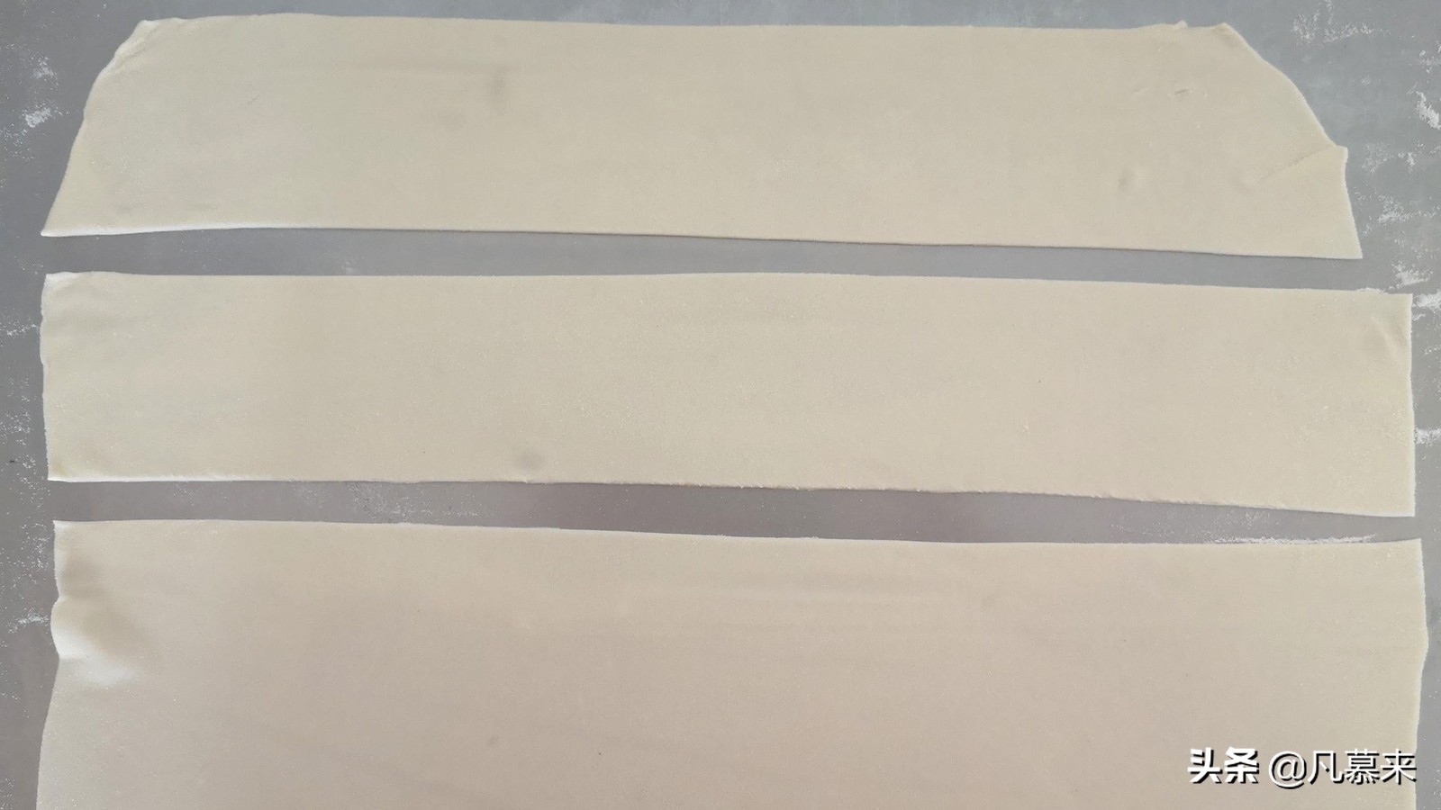 撒上点干面粉,摞起来,切成菱形的或者四方形或者三角形的块。
