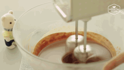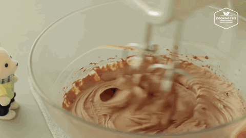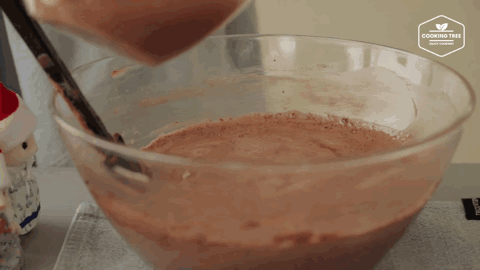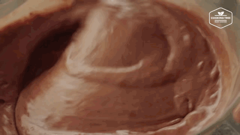 ▲接着把混合物倒回可可面糊中,依旧用翻拌的手法翻卷均匀。