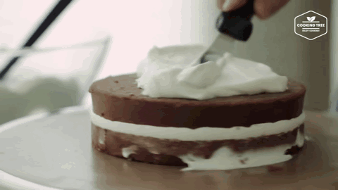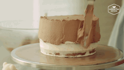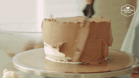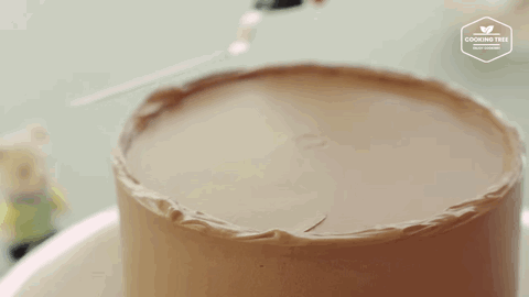 巧克力奶油抹面超平整细腻,而你只需拿个刮板再转动裱花台就行!