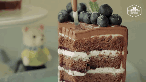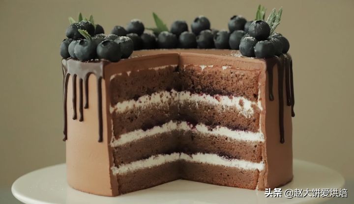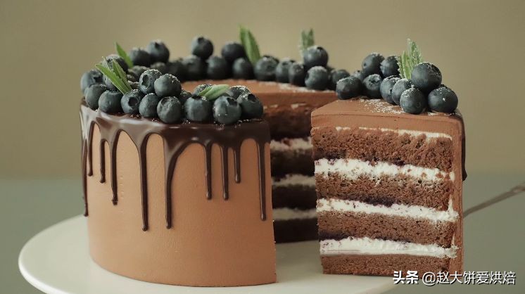 1层巧克力咖啡味的抹面+4层蛋糕片+4层蓝莓奶油的配置,口感比黑森林还棒~