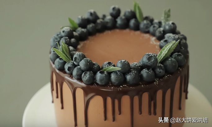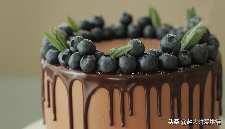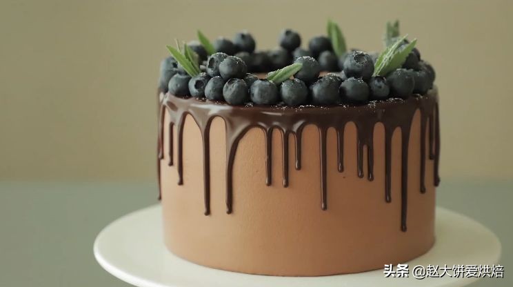 你看这个蛋糕抹面,是不是十分平滑?咖啡色的奶油配上一圈蓝莓,简单又不失精致。