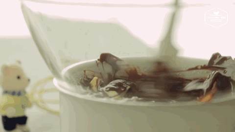 淡奶油分两次倒入搅拌均匀,此时还未离开热水哦!搅拌均匀后,盖上保鲜膜,送入冰箱冷冻层冷冻15分钟。一定要冷冻的够冷才能取出。