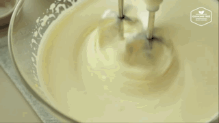 取出后用打蛋器高速打发,尽量不要让打蛋器与盆壁发生太大的碰撞,产生大气泡就不好。