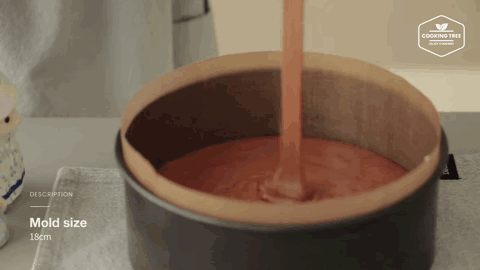 ▲将面糊倒入6寸模具中,震几下,放入170度的烤箱烘烤40分钟左右。