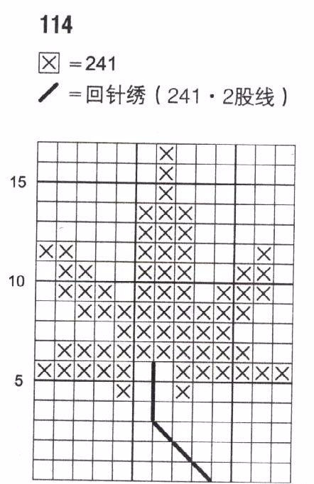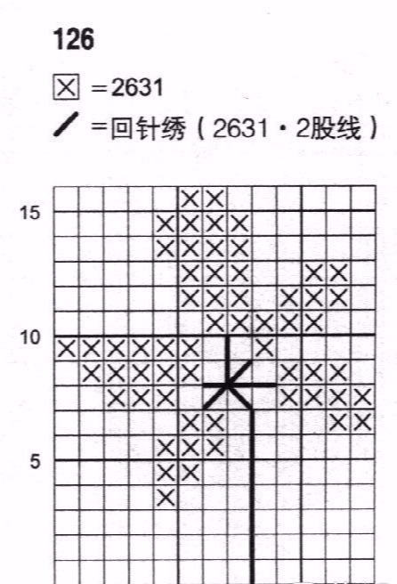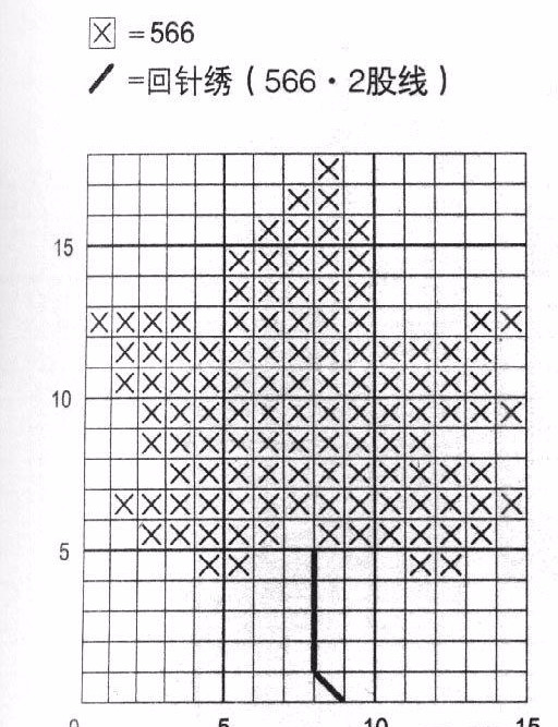 (Vertical cross stitches) 纵向连续的情况下,每个绣 成十字的模样再向下绣 。