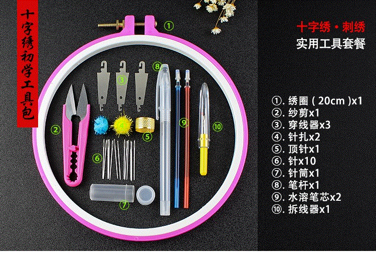 还有可选用的工具:绣架、绷子、绕线板、小剪刀、拆线器等。