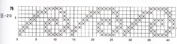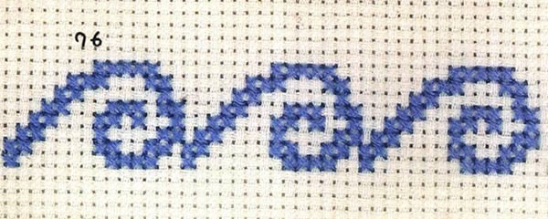 (Horizontal cross stitches) 图案上横向同色线连续的情况下,先一直向右绣1/2针再返回。这样绣 ,线的方向可以保持一致。