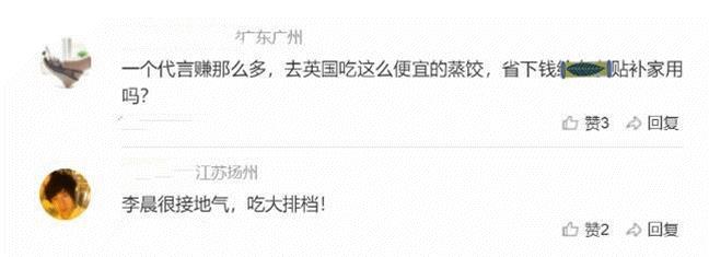 大家都纷纷称赞李晨真是太节俭了,“李晨很接地气,吃大排档”“大明星,很接地气”。