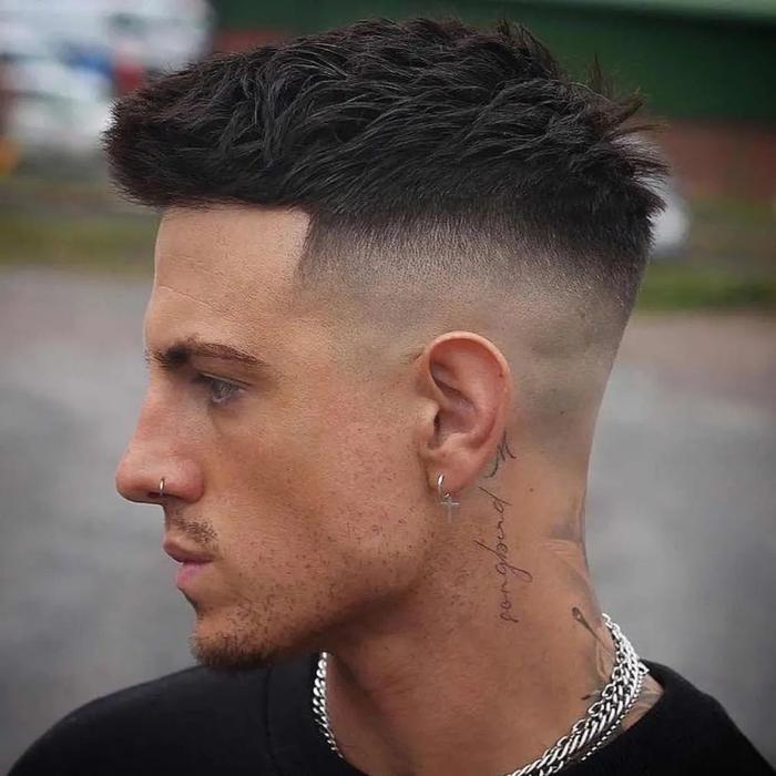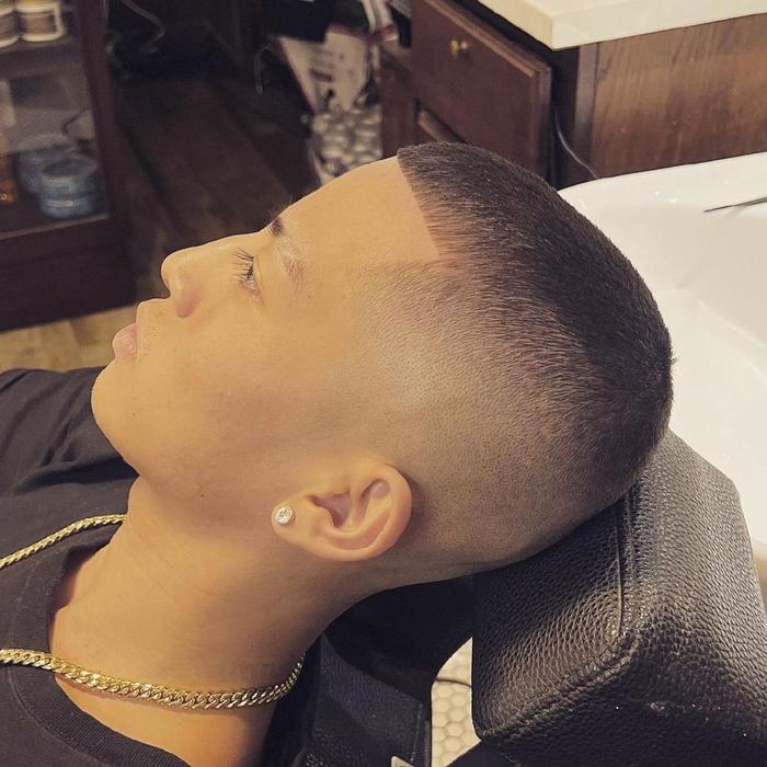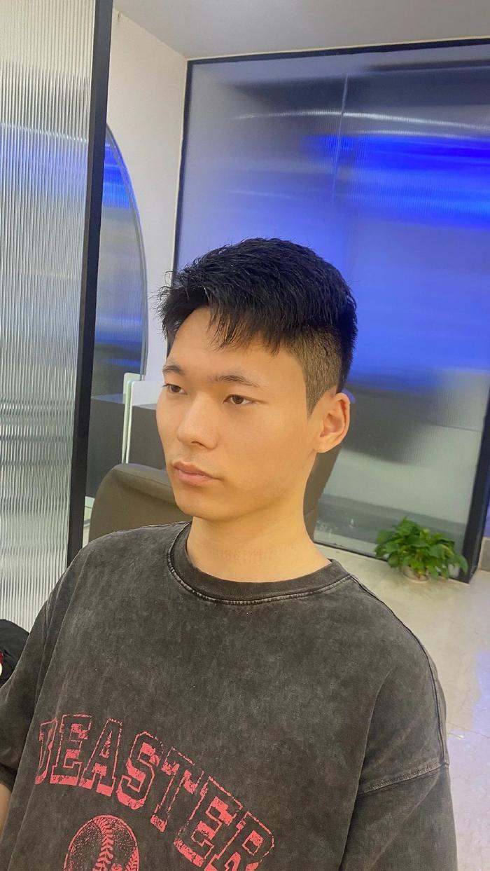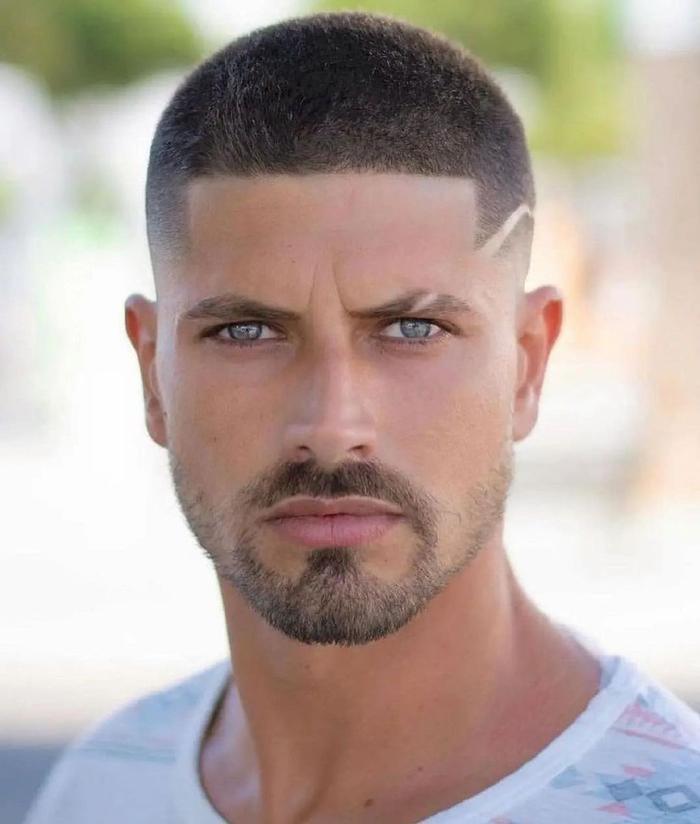 咱们先从简单一点的男士发型开始,超短的男士发型算是最好打理的一种,整体跟随头型修剪成一个圆寸的效果,利落很清爽,侧面还可以划上一道雕刻线条,显得很个性独特。