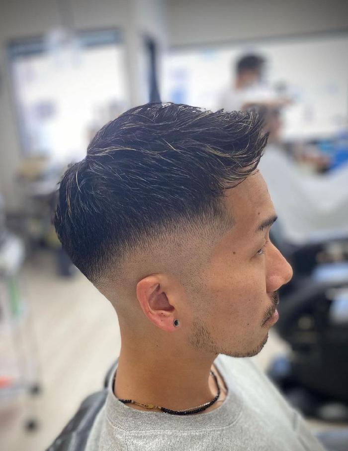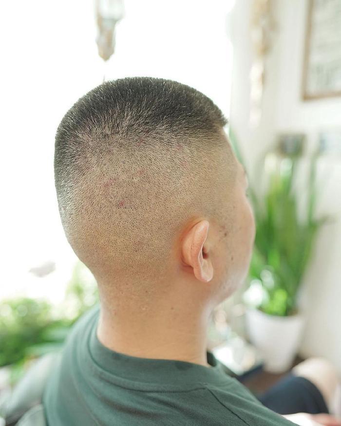 超短圆寸头同样需要剪出层次,才能体现出更高级更帅气的风貌,头顶会比周边略长一些,周边是一个渐变的彩效果,色调由浅到深,很自然的过渡。
