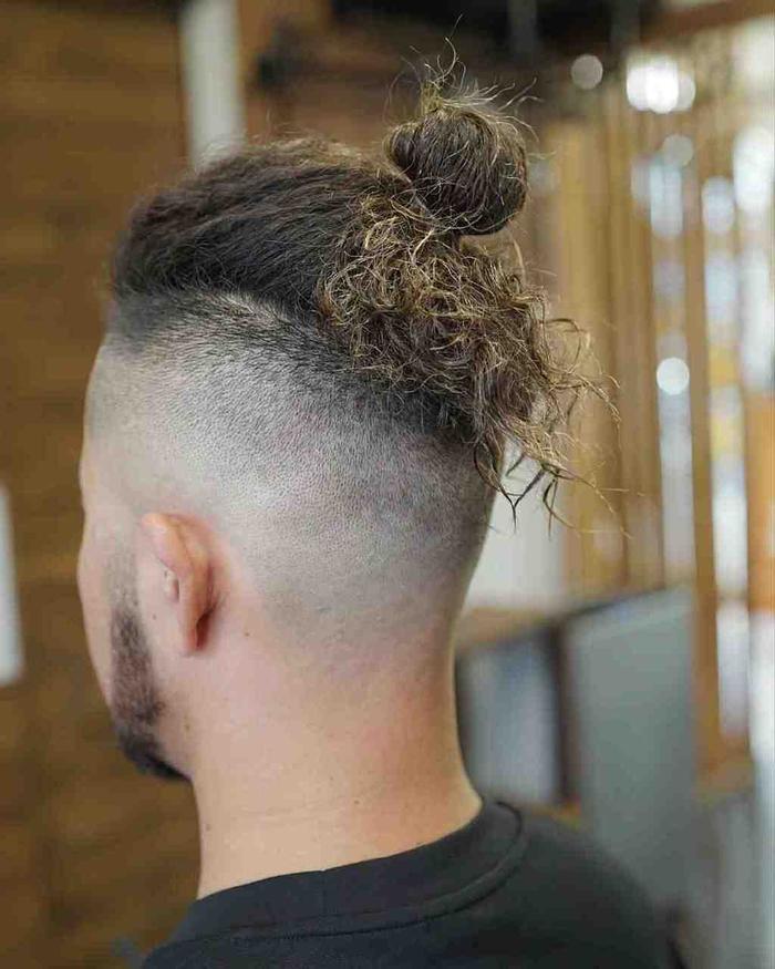 当然喜欢长头发的男士,也可以把头顶留长烫一烫,然后扎个发髻,也是很有辨识度,走到哪里都是超高的回头率。