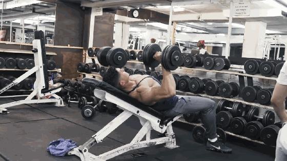 第一个动作是哑铃卧推。