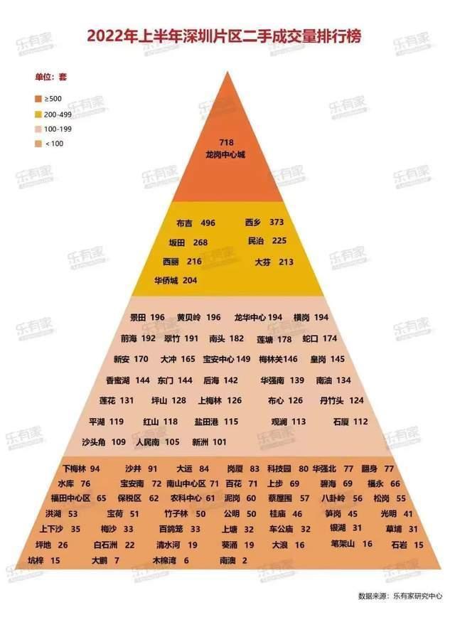 比如说,深圳“抗击打”能力最强的片区在东部龙岗,而不是西部;深圳二手房流通率最高的片区,有一半在东部龙岗;2022年上半年二手房成交排名第一的片区,依然在东部龙岗。