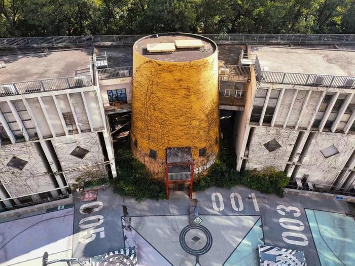 中康路8号的雕塑家园在中康艺术长廊对面,整个园区不大,最醒目的是一栋爬满藤蔓的淡黄色建筑,建筑前面有一个篮球场。
