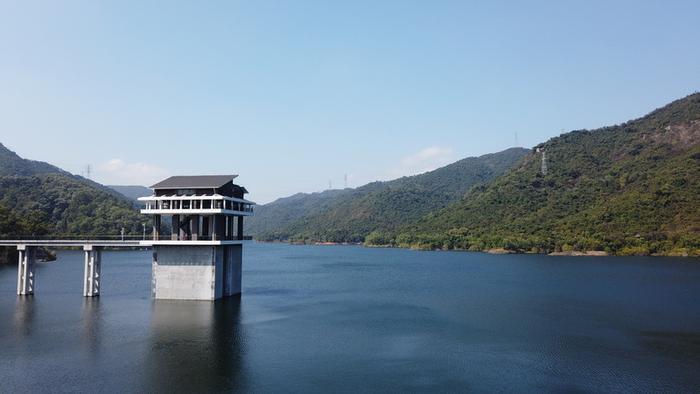 如血管般串联起梅林交通的条条大小路,总会通水库。梅林水库三面环山,青绿对半,以自然山水的灵秀魅力,抚慰着近在咫尺的人间匆忙。