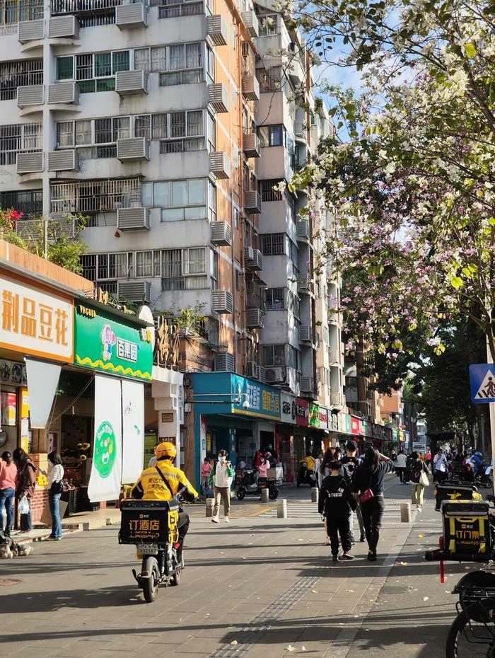 走过葱郁的人行道,走过擦着梅林山边儿的简单绿道,走过荔枝树与俏皮的嫩芽,走过好像被旧时光挽住的老房子,走过繁花不尽的坡道,再走回人声鼎沸的梅林路中,你会有穿行光阴、恍若隔世的感觉。