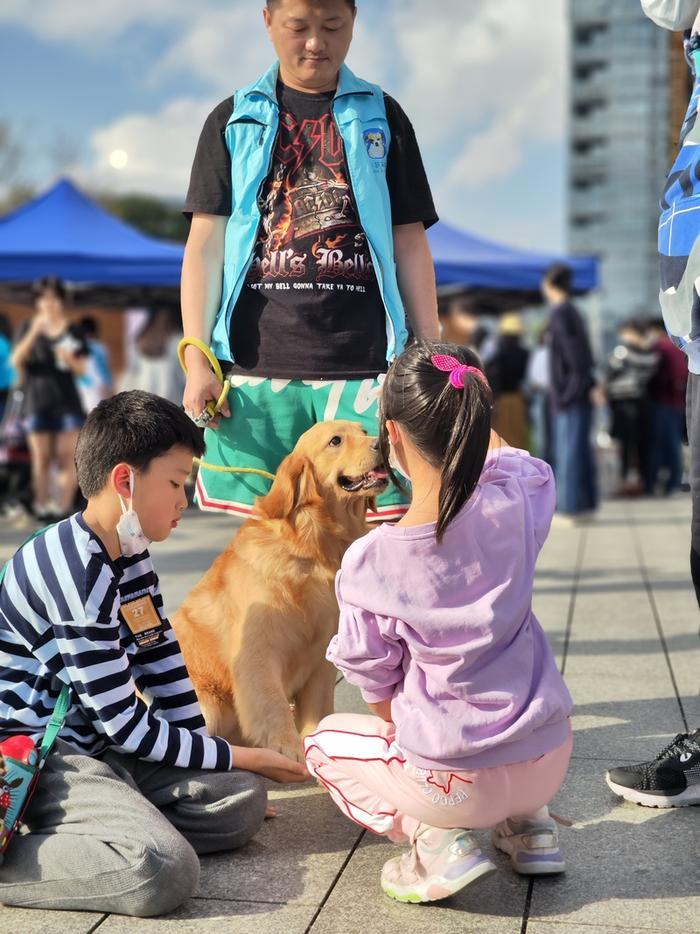 周末时卓悦汇商场的广场上,不少宠主带宠物来社交。