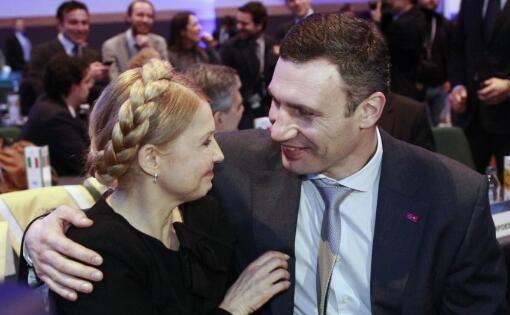 照片季莫申科被乌克兰前拳王搂在怀里,看起来一脸害羞的样子,后面的一群人好像很开心的样子,好像是在开派对,看完这些照片,让我们很惊艳。