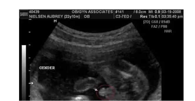 看到胎儿宝宝的小丁丁了吗?虽然现在已经不重男轻女了,但是所有准妈妈都会好奇肚里的宝贝是男宝还是女宝,无论如何,宝宝健康才是最重要的,祝好孕!