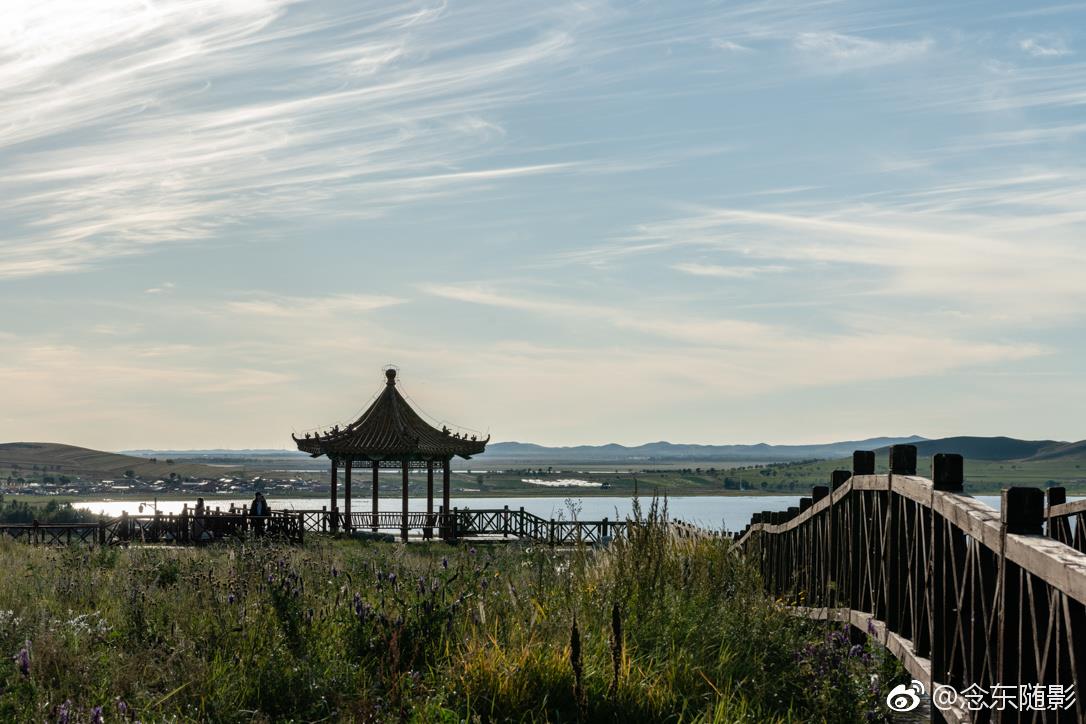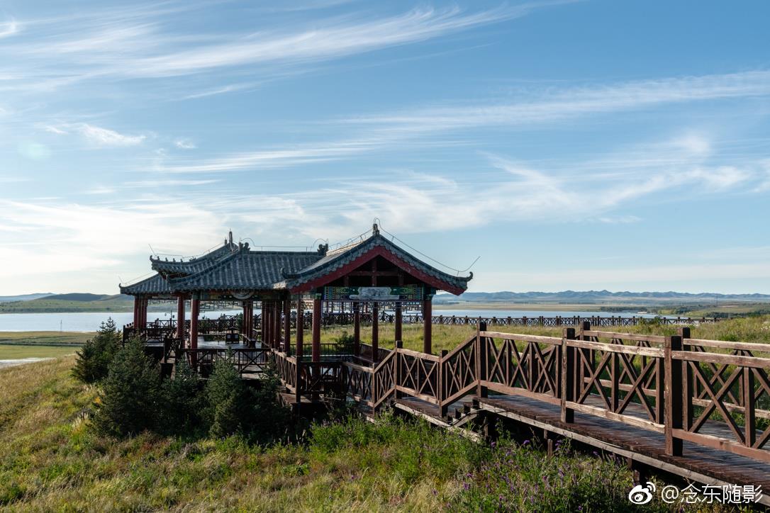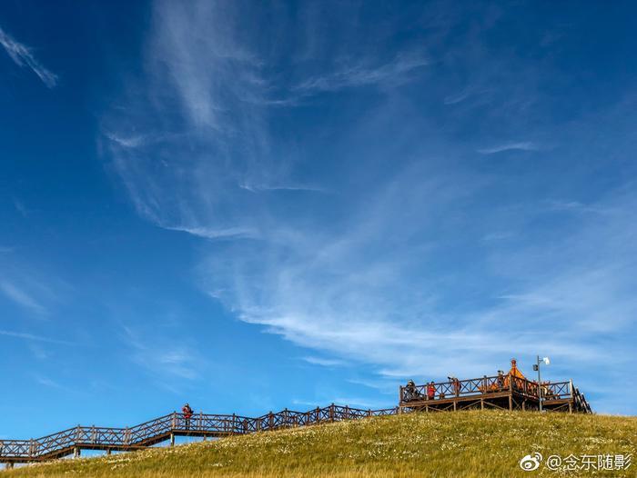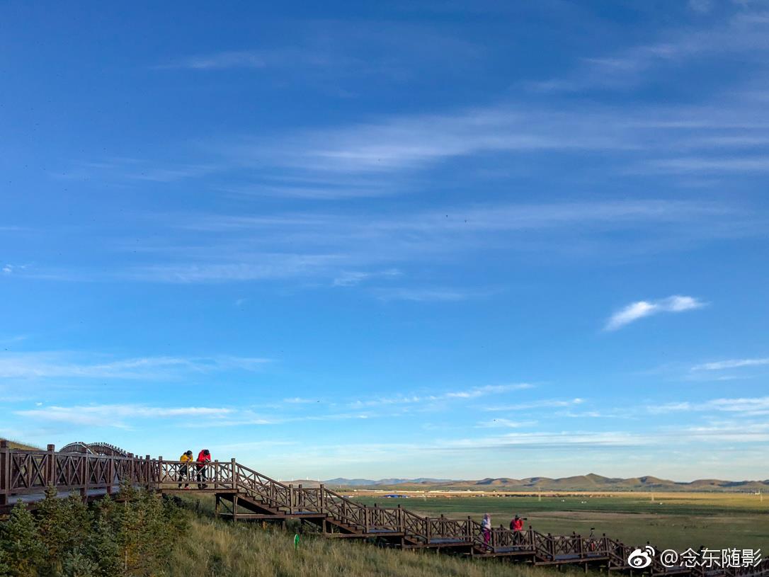 滦河神韵风景区,地处张家口市沽源县,据说这是离北京最近的高原湿地,其湿地类型、景观及生物多样性在草原湿地中具有较强的典型性和代表性。滦河神韵风景区地势开阔,站在山顶,面向草原,一望无际,高原草甸湿地的景象尽收眼底。蓝天、白云、草场、河流,看着就敞亮,好喜欢。这一带历史上曾是辽、金、元历代帝王游猎避暑的圣地。