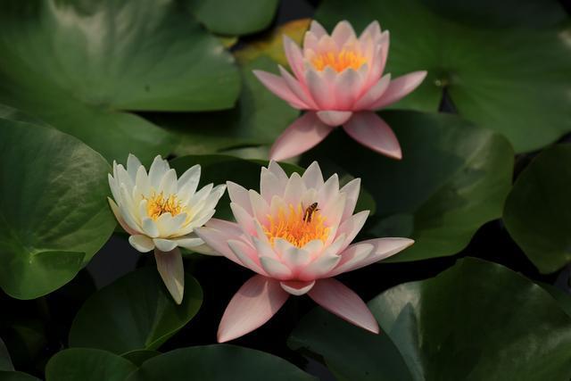 在风情古镇四处闲逛游玩时,发现在水车附近的一池睡莲开的正好,尤其是白色的和粉红色的睡莲在绿叶陪衬下显得更加端庄美丽,散发着淡淡清香的睡莲花吸引着小蜜蜂前来采蜜,这么美这么多的睡莲花在郑州不多见。虽然郑州紫荆山公园和烈士陵园内都有不少睡莲,但几乎每次去花开的都不是太好,只见零星的几朵,成片开的不多见。
