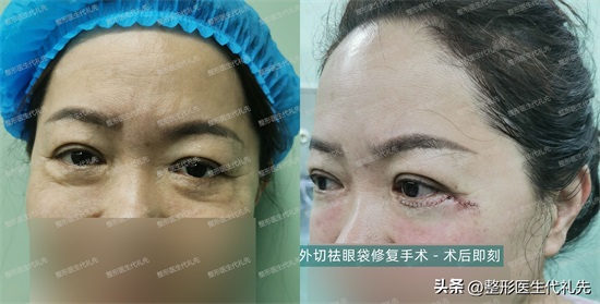 提眉手术+外切祛眼袋手术:术前术后即刻对比