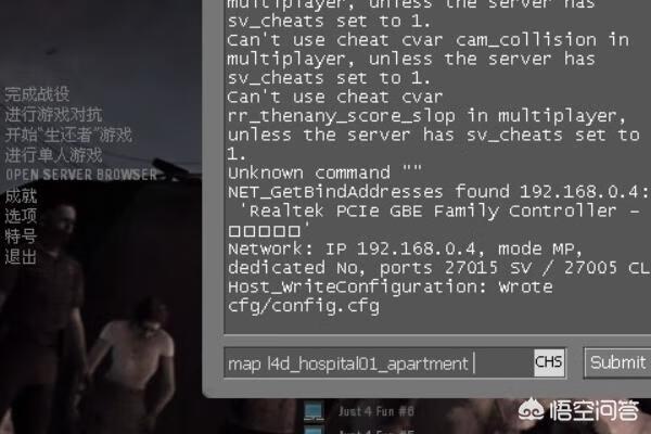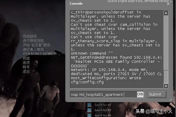 2、输入“map地图代码”建立主机。(如map l4d_hospital01_apartment ) 二代格式为:“map地图代码游戏模式“。