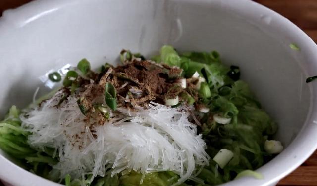 萝卜丝饼准备一个青萝卜,先削皮擦成细丝,加上适量的食盐抓拌均匀,腌15分钟左右,把小葱切成葱花,粉丝提前泡软切碎备用。萝卜丝腌好后,把里面的水分都攥出来,然后打上3个鸡蛋搅拌均匀,再把粉丝、葱花放进去,再加上花椒粉、十三香、虾皮搅拌均匀,最后加上适量的面粉,搅拌成黏稠的面糊。