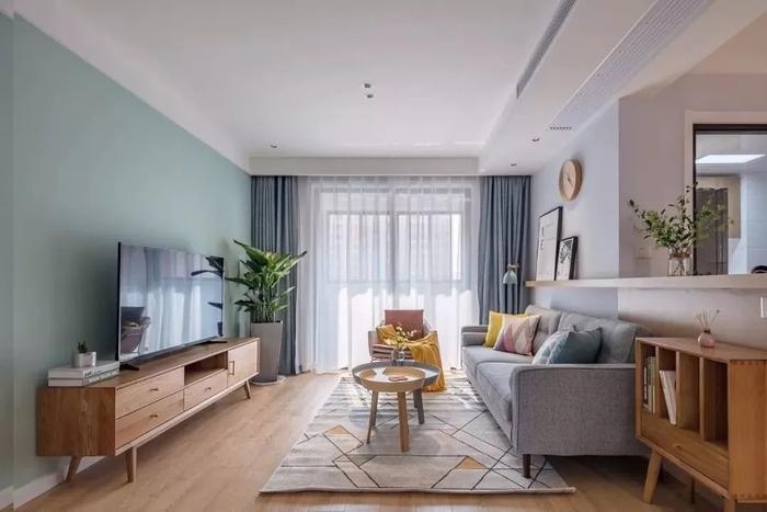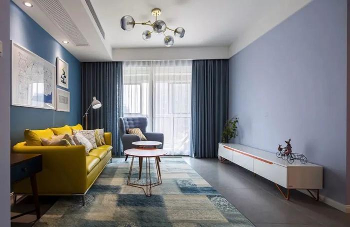 客厅可以铺纯色地毯,根据客厅的主色调,或者选择和墙面、沙发、窗帘等相似色调的地毯,保持空间的完整性。