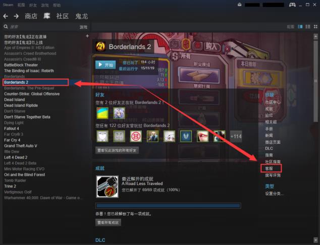 3.在页面右下方会显示该游戏的社区中心、新闻等信息,点击【客服】;