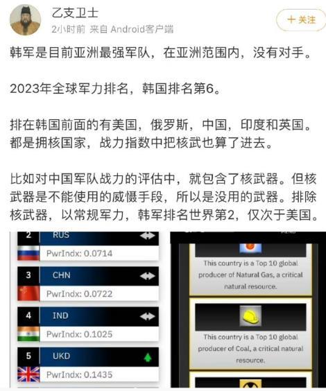发帖称“韩军是目前亚洲最强军队,在亚洲范围内没有对手。”