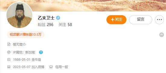 有个IP显示在新加坡、名为“乙支卫士”的、刚注册一个多月微博账户。