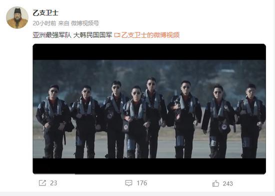 这个精棒啊,你别说,还真是脸极大,接着又在微博上发了韩国军队的宣传片,然后再次叫嚣说“亚洲最强军队,大韩民国国军”。
