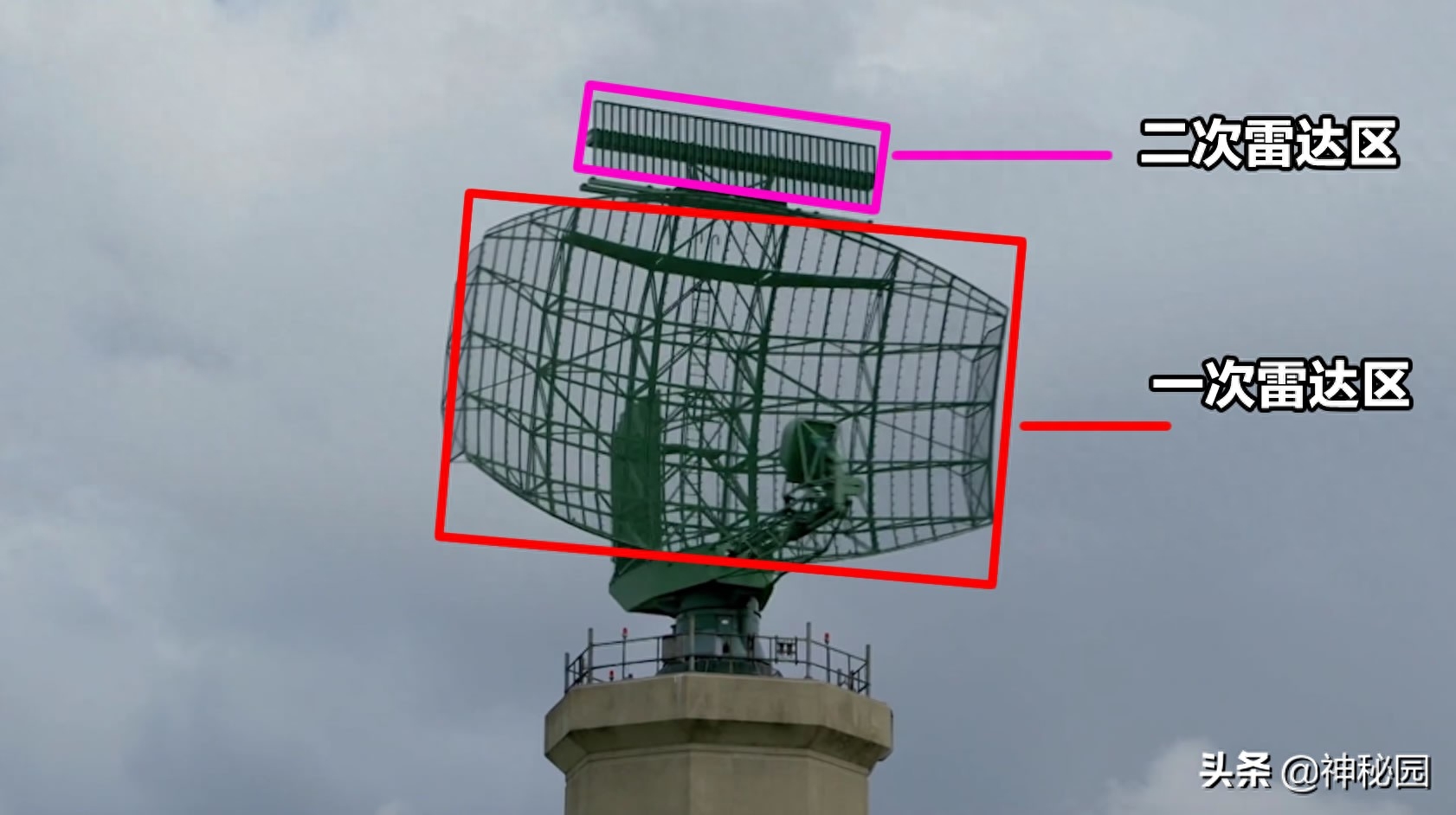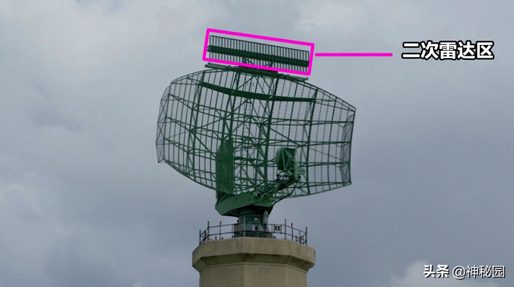 而为了延长观测距离,获取更多信息,雷达上还有另外一套系统,被称为二次雷达,就是顶部那个长方形的部分。