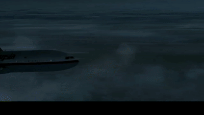 然后飞机开始以螺旋下降的形式坠落。最终撞向海面,整架飞机也开始解体。