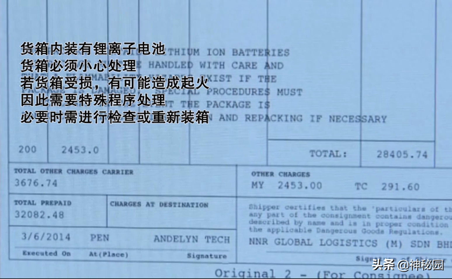 货物清单内有220公斤锂电池出现