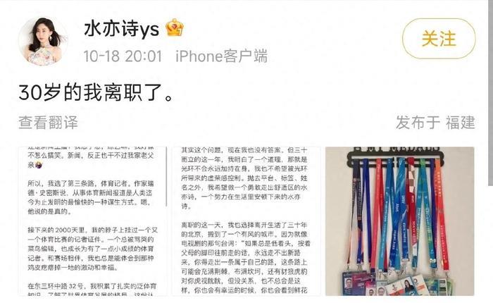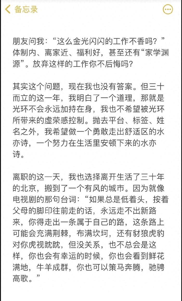 水均益女儿水亦诗从央视离职,30岁告别铁饭碗,辞职当天离开北京