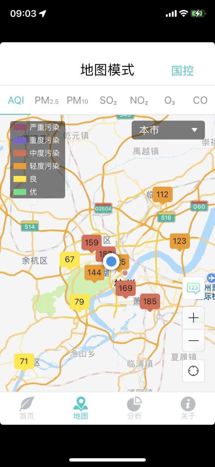 实时的空气质量显示,杭州目前处于轻度污染,首要污染物时PM2.5。严重的城区达到中度污染。