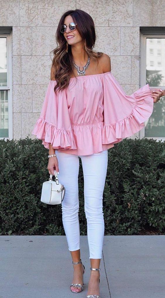 露单肩的穿搭就是非常的百搭了,无论你是什么肩都可以穿。