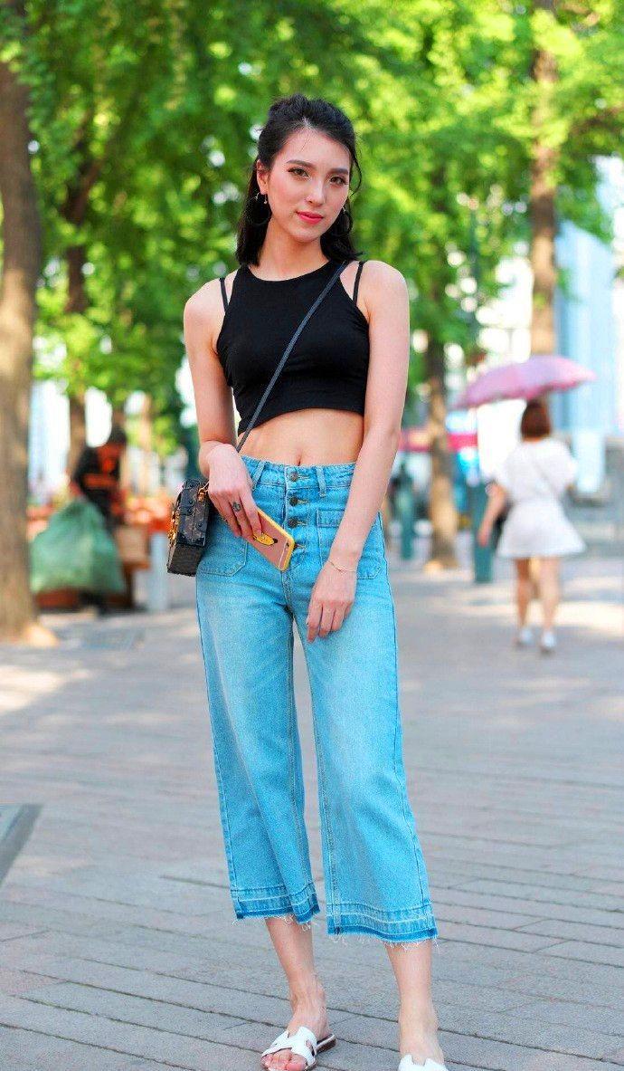 街拍:靓丽的街头美女,高挑身材美腿又细又长,胸以下全是腿