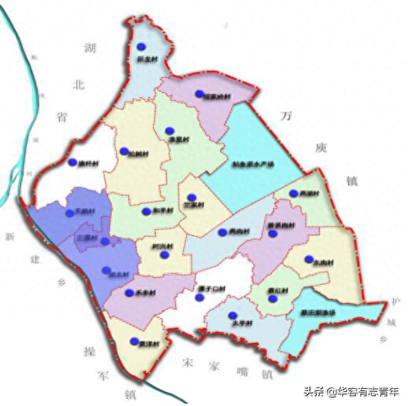 2004年辖菱芜湖、华丰、前进、赛美、先锋、华家湾、建设、坝河、白洋圻、牛角尖、长艳湖、新合、沙口、红专、双堤、建兴、双湖、益群、建军、南堤、北堤、十三刀、新湖23个行政村;六甲湖渔场、桑场、水产场、集镇。